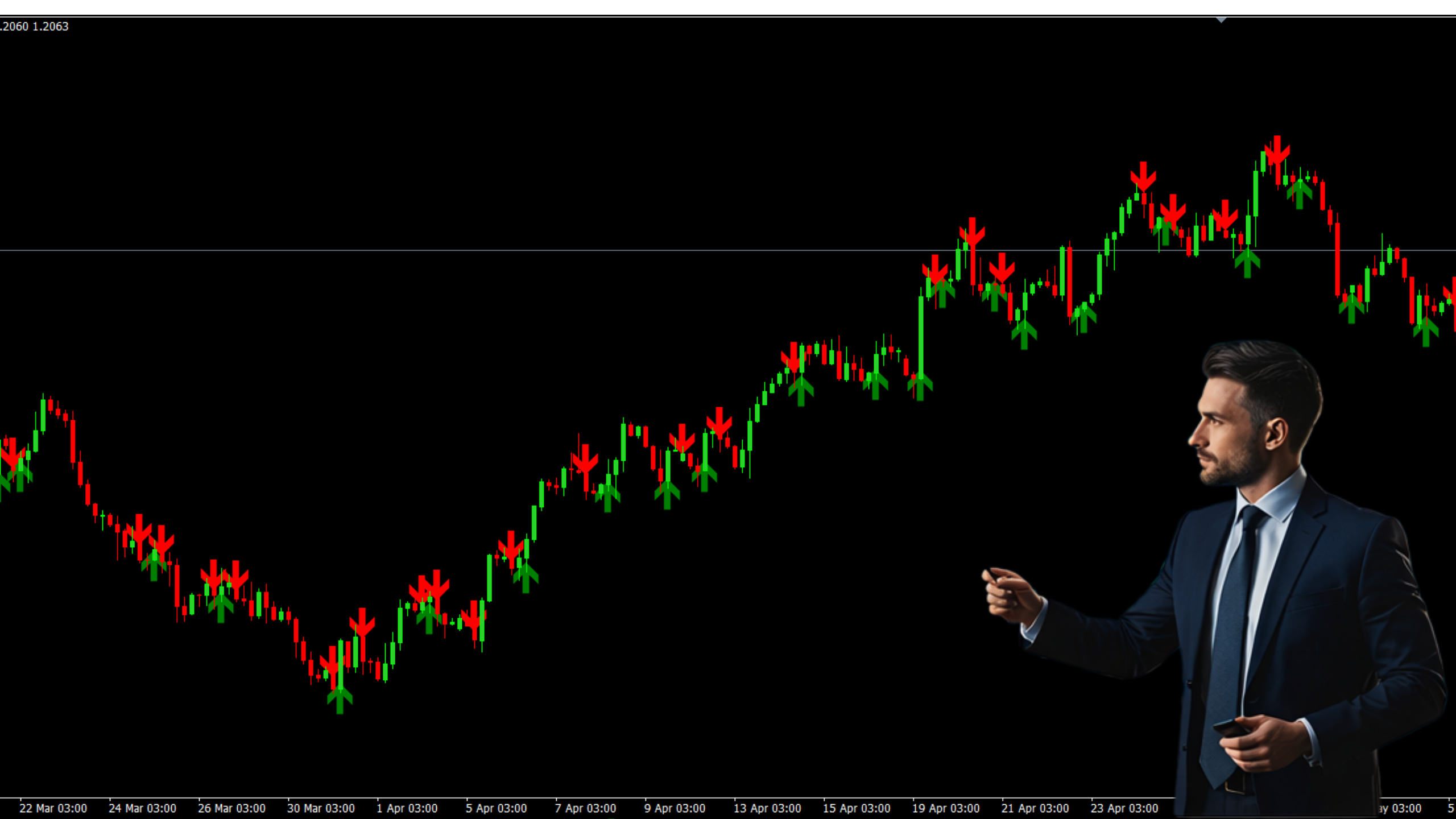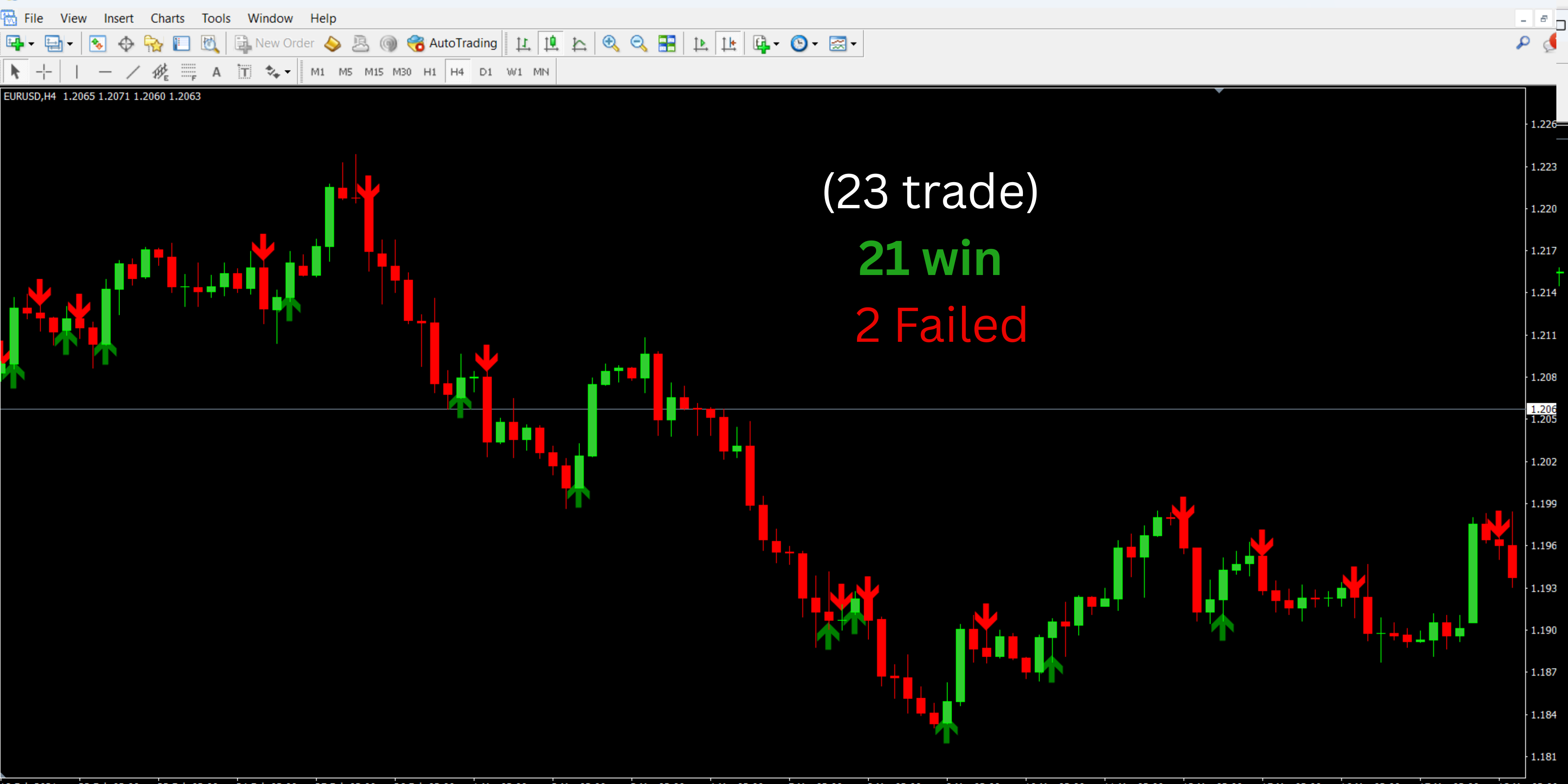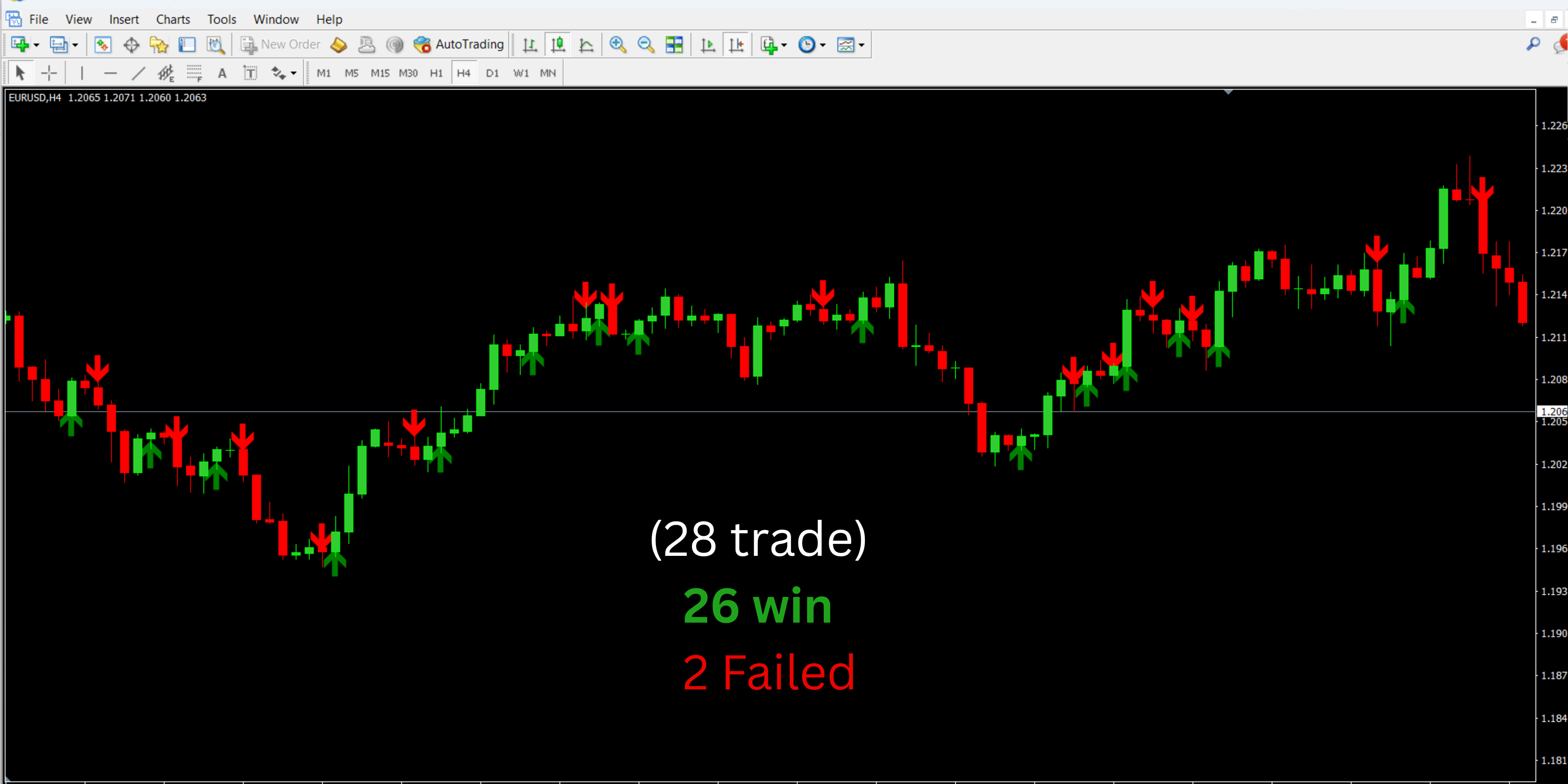 These indicators work together to analyze price action and produce reliable buy (green arrow) and sell (red arrow) alerts directly on the trading chart.